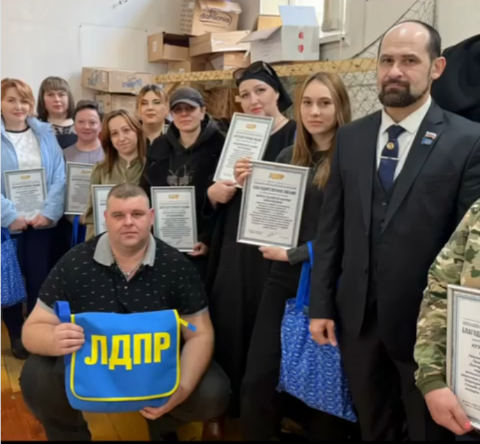 Заместитель координатора Александр Гедугошев вручил благодарственные письма от Леонида Слуцкого и подарки волонтёрам, собирающим гумпомощь для наших бойцов на передовой. Кабардино-Балкарское региональное отделение ЛДПР очень ценит Ваш труда, спасибо за ваш труд, дорогие женщины. Инициативы ЛДПР всегда направлены на поддержание и развитие патриотических инициатив