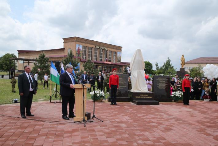 Глава КБР Казбек Коков принял участие в торжественном открытии в селении Карагач памятника Герою России Тимуру Тамазову.